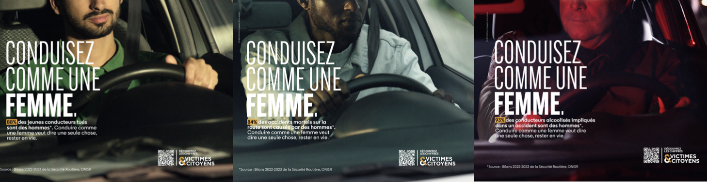 L’association Victimes & Citoyens a lancé la campagne « Conduisez comme une femme » pour répondre à un constat clair : les hommes sont très largement surreprésentés dans les accidents les plus graves. Malgré un usage de la voiture comparable, ils causent 84 % des accidents mortels et représentent la quasi‑totalité des conducteurs alcoolisés impliqués dans un accident.