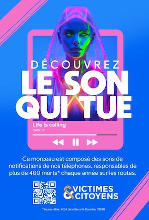 La campagne se déploie sur les plateformes musicales, les réseaux sociaux, une campagne d’affichage nationale et un QR code invitant chacun à écouter ce « son qui tue ». Un message simple : au volant, aucune notification ne vaut une vie.